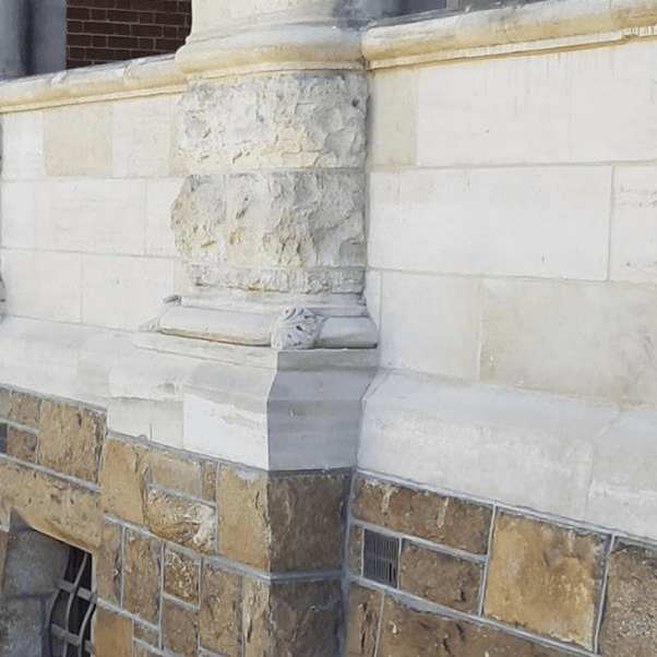 The lowest level is of stone, rusticated stone to be precises. The rough exterior of the blocks leads to reading them as natural, a product of nature not of pure architecture. In one sense this is a lie, every block has been quarried and shaped for its purpose. But the psychological effect is to see the building as emerging naturally from the ground, not forcibly placed upon it. An essay for grad school architectural history would use words like ‘chthonic’, but I don’t need to be pretentious here. So, I’ll just say the Jubilee Building is rooted like a tree. Trees grow from the soil they do not simply sit on it.