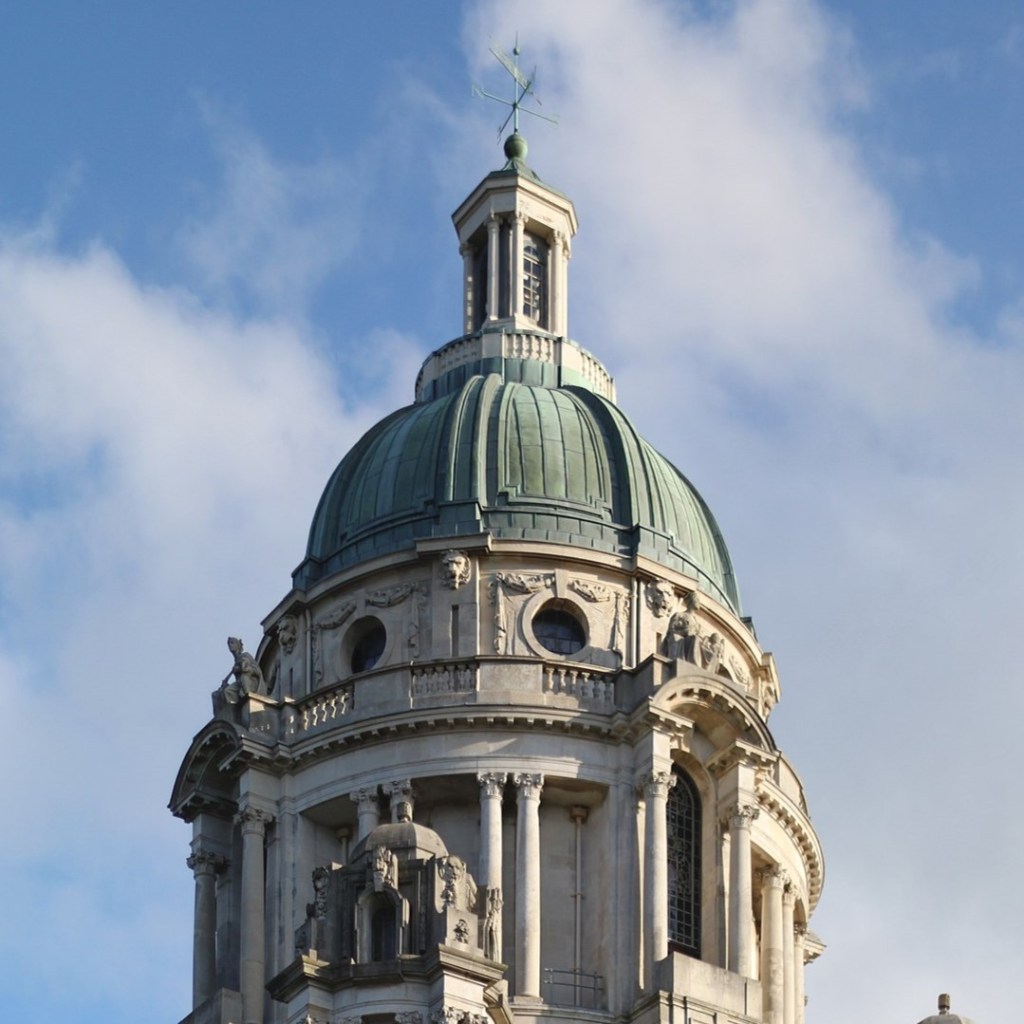 A similar, if somewhat grander, use of the same architectural principle can be seen at the Ashton Memorial (1907, John Belcher) which dominates the skyline of Lancaster, England. Built three years after Forrest Chambers, you can again see the balcony around the drum). It’s a fine solution taken from Renaissance buildings and applied in slightly different ways by different architects.