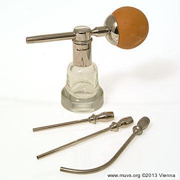 It consisted of two parts: a rubber bulb containing the powder attached to a hollow cylinder with a mark on it. The cylinder was inserted into the vagina up to the mark, then the bulb was pumped once or twice in order to catapult the necessary amount of powder against the opening of the uterus.